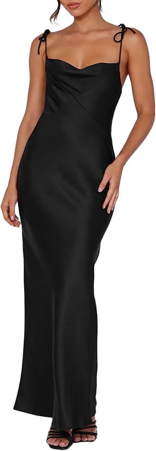 FEATURES: Satin dresses for women elegant/Cowl neck dress for women/Wedding guest dresses for women/Summer dresses for women 2025/Slip dress for women/Spaghetti strap dresses for women/Formal dress/Tie strap dress for women/Cocktail dresses for women/Bridesmaid dresses
