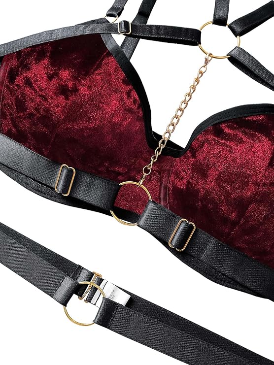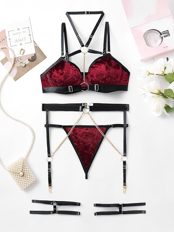 / Sexy Pu Leather Strappy Underwire Garter Belt Lingerie Set