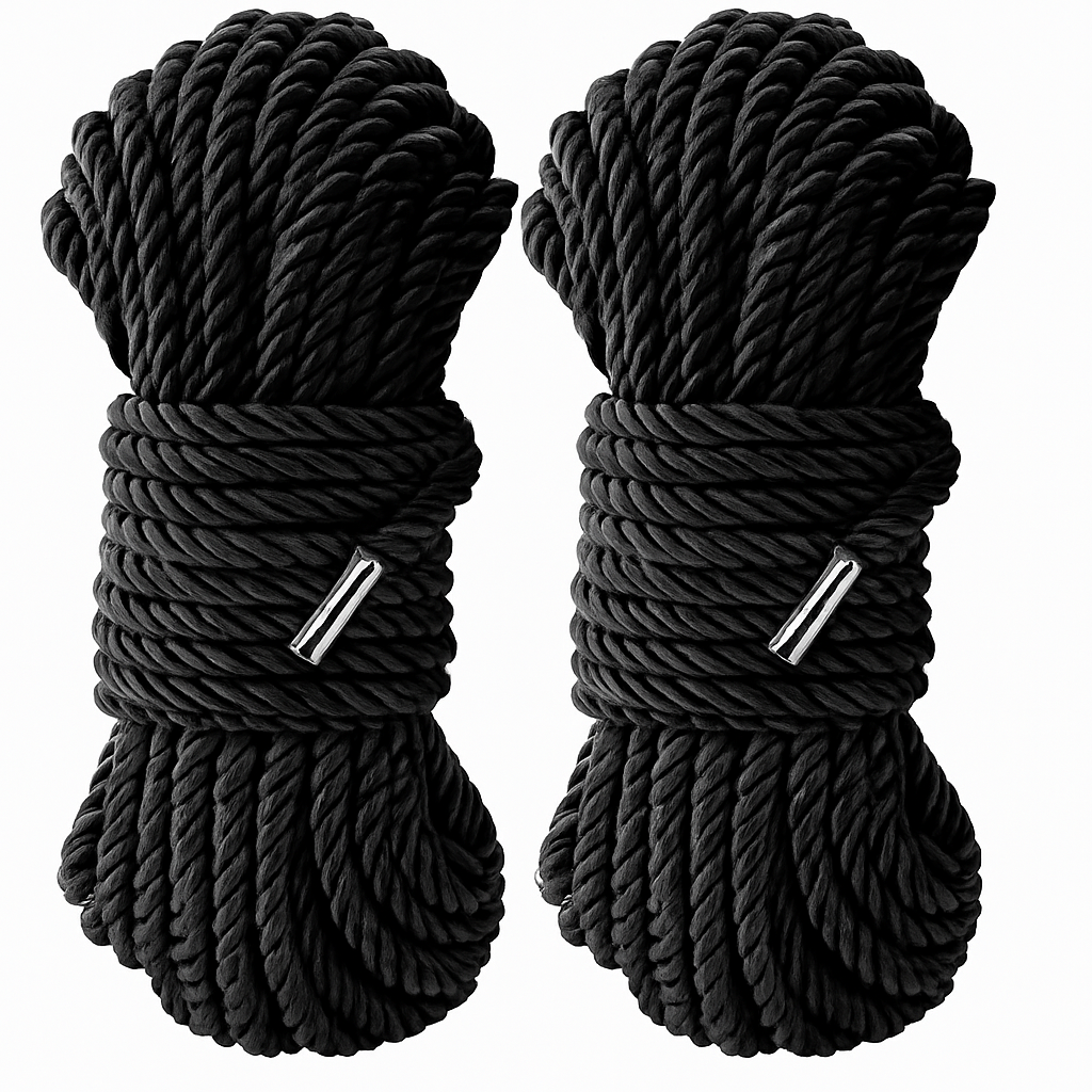 Silk Soft Rope, Skin Friendly Soft Nylon Silky Black Red Ropes, Durable Multipurpose Color Braided Satin Twisted Cord Long Rope 32 Feet 8 mm (2-Pack, Black)